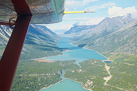 Take a bird's eye view of the trail that the former gold seekers had to take on their way to Dawson City. The flights takes you over the Chilkoot- and White Pass, Lake Bennett and then along the Whitepass Railway to Tagish Lake where we land for breakfast or lunch.